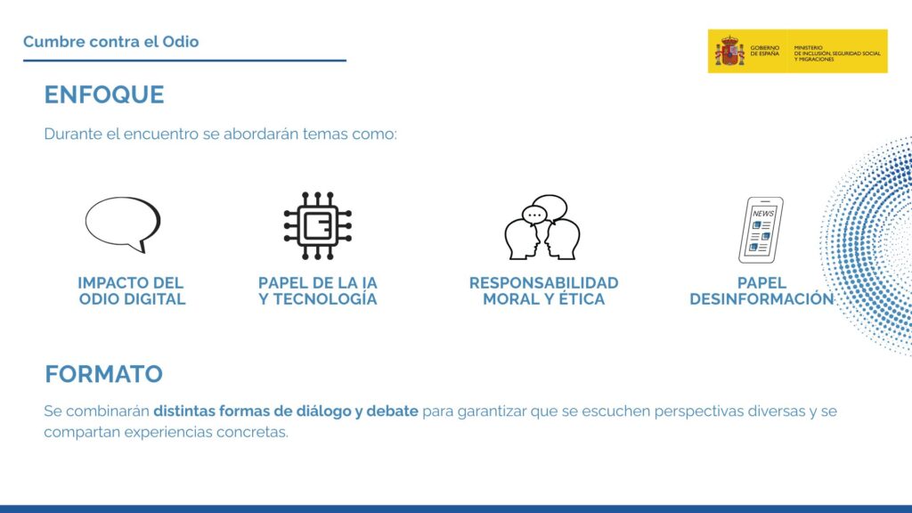 España acogerá el próximo miércoles 11 de Marzo la I Cumbre contra el Odio, un espacio para reflexionar sobre los desafíos que plantea la propagación del discurso de odio y la polarización en los ámbitos social y digital.