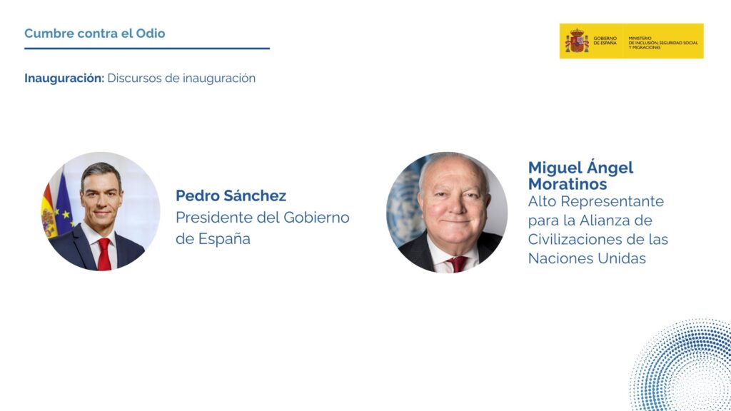 acto arrancará con la intervención del Presidente del Gobierno, Pedro Sanchez Castejon y del Alto Representante para la Alianza de las Civilizaciones de las Naciones Unidas, Miguel Moratinos, dos intervenciones de alto nivel que sentarán las bases de la jornada.