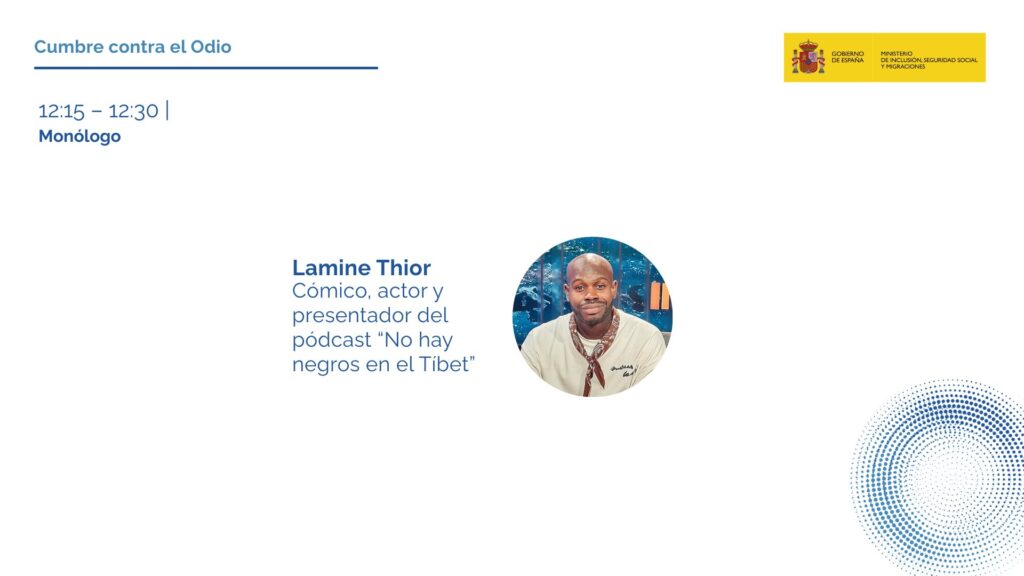 El cómico y actor, creador del podcast «No hay negros en el Tibet» Lam Thior pondrá la nota de humor a la jornada con un monólogo.A través de la risa, abordará temas como el racismo cotidiano, invitando a la reflexión fiel a su estilo desenfadado y crítico.