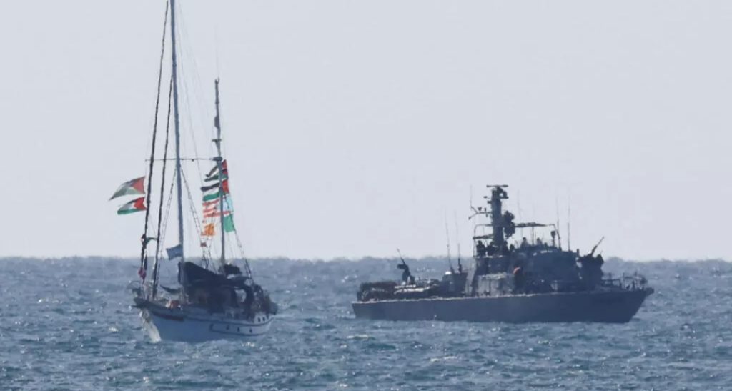 La marina israelí comenzó a interceptar las embarcaciones de la flotilla el miércoles 1 de octubre de 2025. La interceptación tuvo lugar en aguas internacionales, ya que la distancia exacta de la costa gazatí donde se produjo la intercepción comenzó a unas 70-80 millas náuticas (130-148 km) de la costa de Gaza y la flotilla informó en un momento que sus barcos se encontraban a 46 millas náuticas (85 km) de la costa.