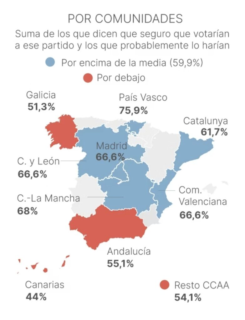 Otro Sondeo de GESOP, cree que el 60% del electorado de izquierdas votaría a la lista unitaria «plurinacional» que propone Rufián, según la última encuesta del Gabinet d’Estudis Socials i Opinió Pública (GESOP) para Prensa Ibérica, seis de cada diez votantes que se sitúan en la izquierda verían con buenos ojos una alianza electoral de este tipo. Un 16,6% asegura que “seguro” la votaría y un 43,3% afirma que “probablemente” lo haría. El dato refleja un terreno fértil para una propuesta conjunta de las fuerzas soberanistas y regionalistas a la izquierda del PSOE. Entre los votantes de SUMAR la opción Rufián arrastrarla hasta el 72%.o lo que es lo mismo seria el punto y final de un proyecto ya muerto.
