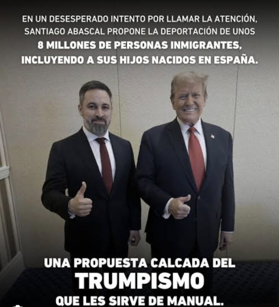El partido de Abascal ha acusado al PSOE y a sus socios de izquierdas de querer “sustituir al pueblo español por población de origen extranjero, para manipular el censo electoral en beneficio propio”.