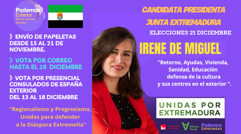 DESCARGA las papeletas “ UNIDAS por EXTREMADURA ” Elige a IRENE de MIGUEL como presidenta de EXTREMADURA.